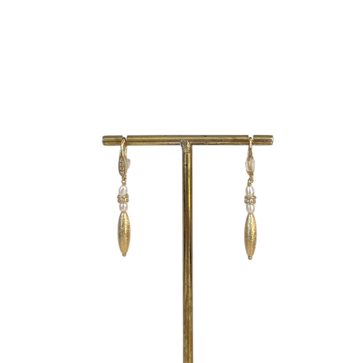 laiton plaqué or, perle blanche, zircons blancs