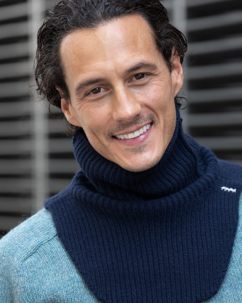 Unisex cashmere neck which in a fashion alternative to the scarve. It is worn below a shirt or a Colv sweater, it will perfectly replace a turtleneck.