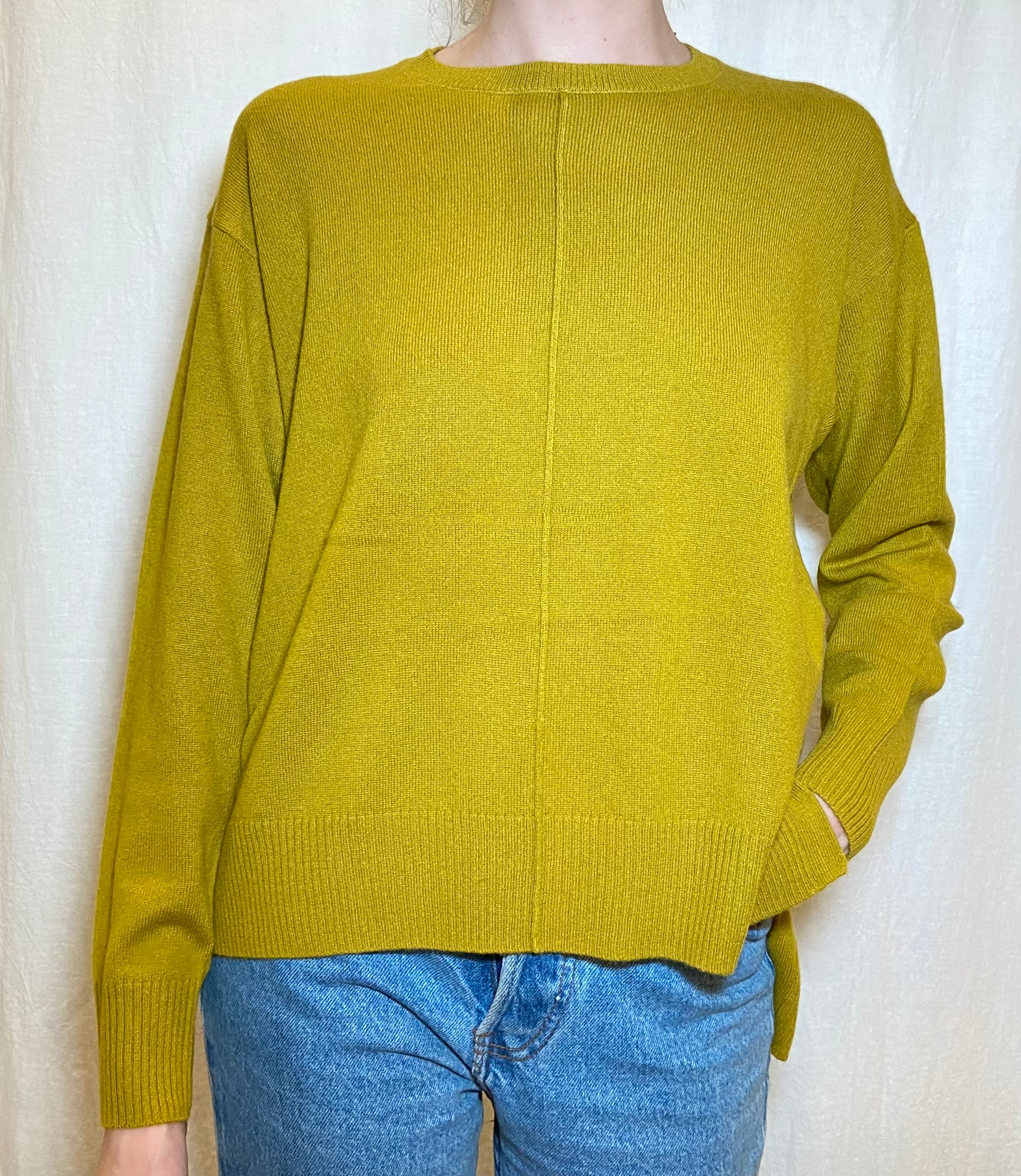 . Description: Round neck sweater with straight cut with nice details with vertical central seam on the front and back.