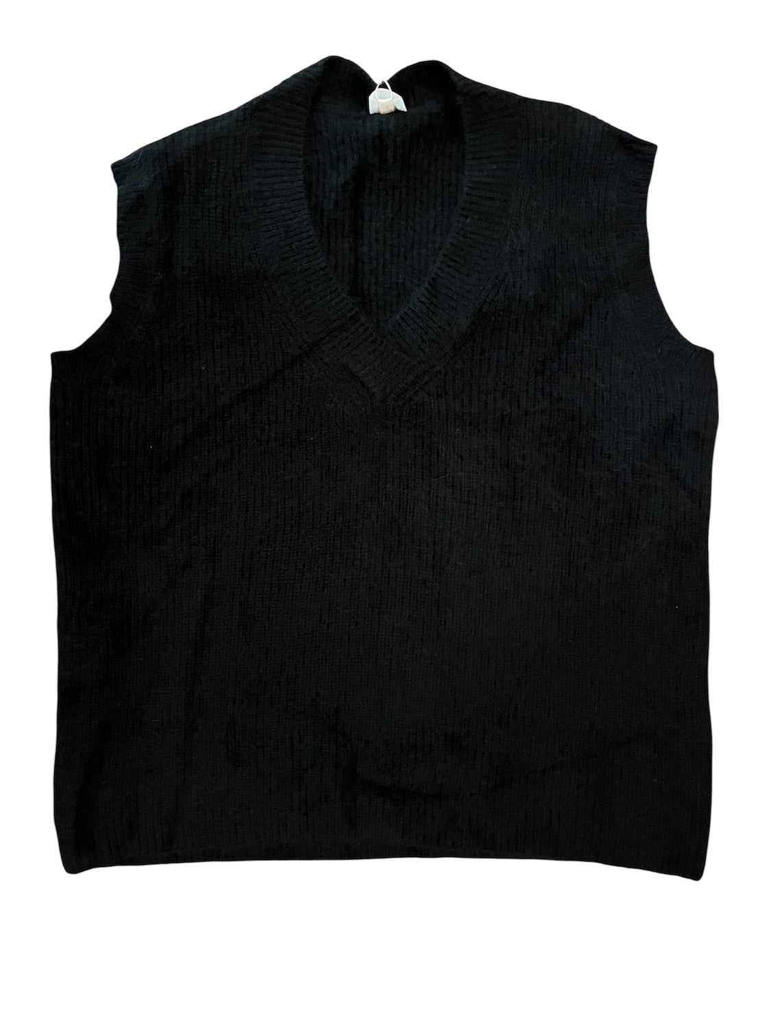 Ce pull sans manches couleur noir peut être porté sur une chemise ou sur un pull léger.