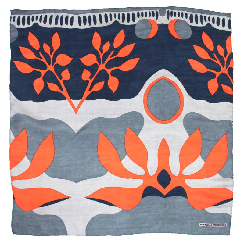 Foulard en soie mini aralia orange - les Belles Vagabondes