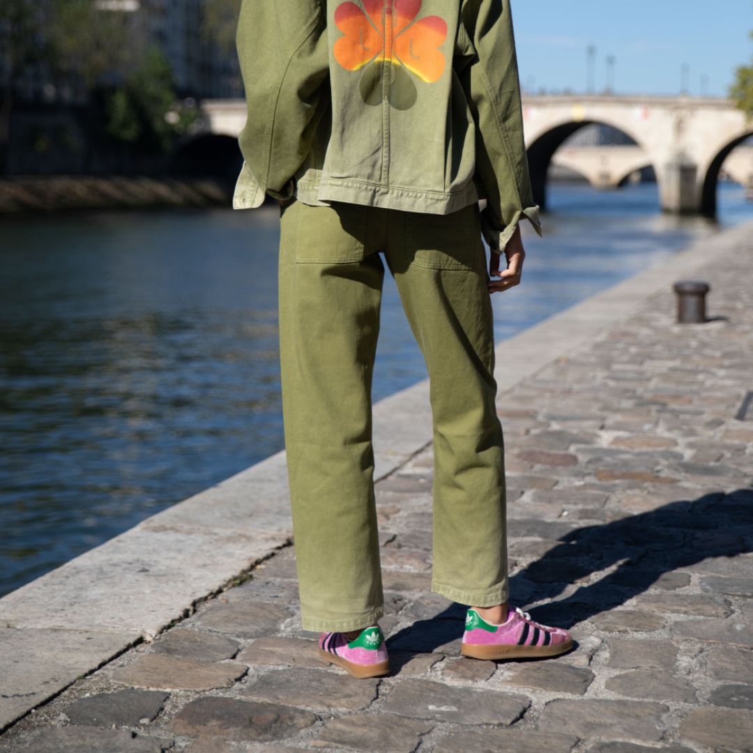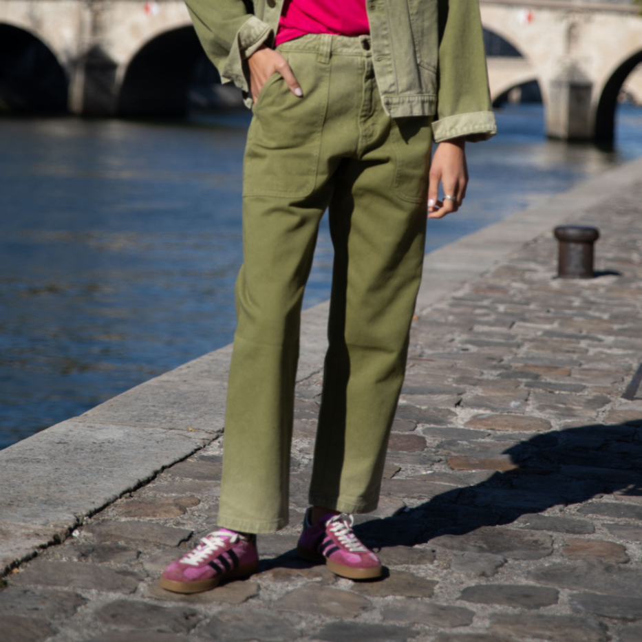 The Milano trousers are made from cotton corduroy, with a mid-rise waist and a slightly flared straight leg.