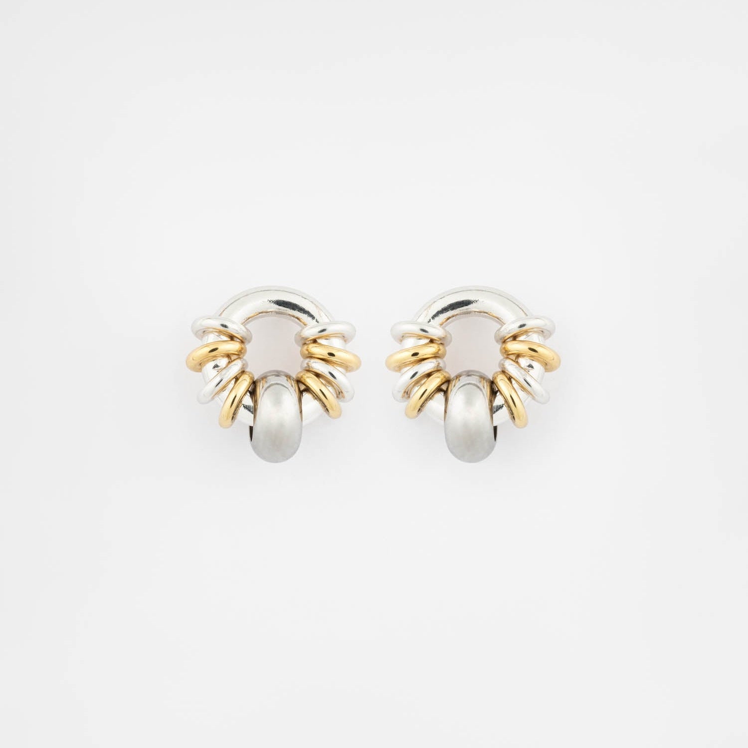 Discrètes mais affirmées, les boucles d'oreilles Donut Baby Argent allient anneaux dorés sur une base argentée. Elles apportent une touche délicate lorsqu'elles sont associées à nos autres créations SIGAL.