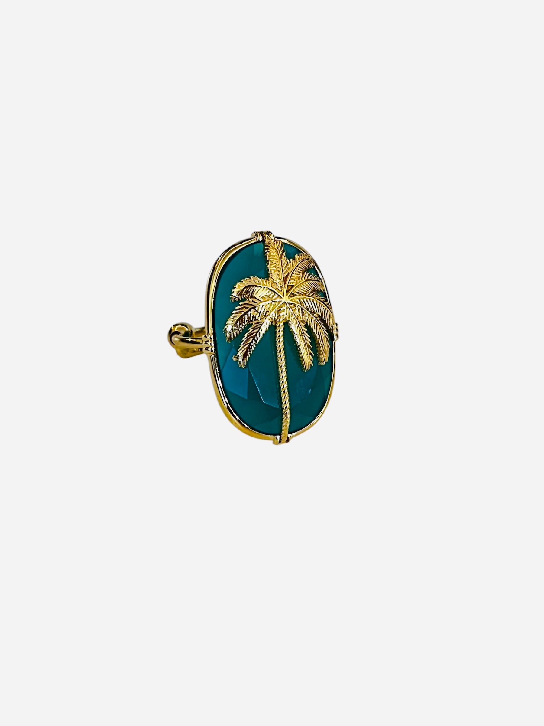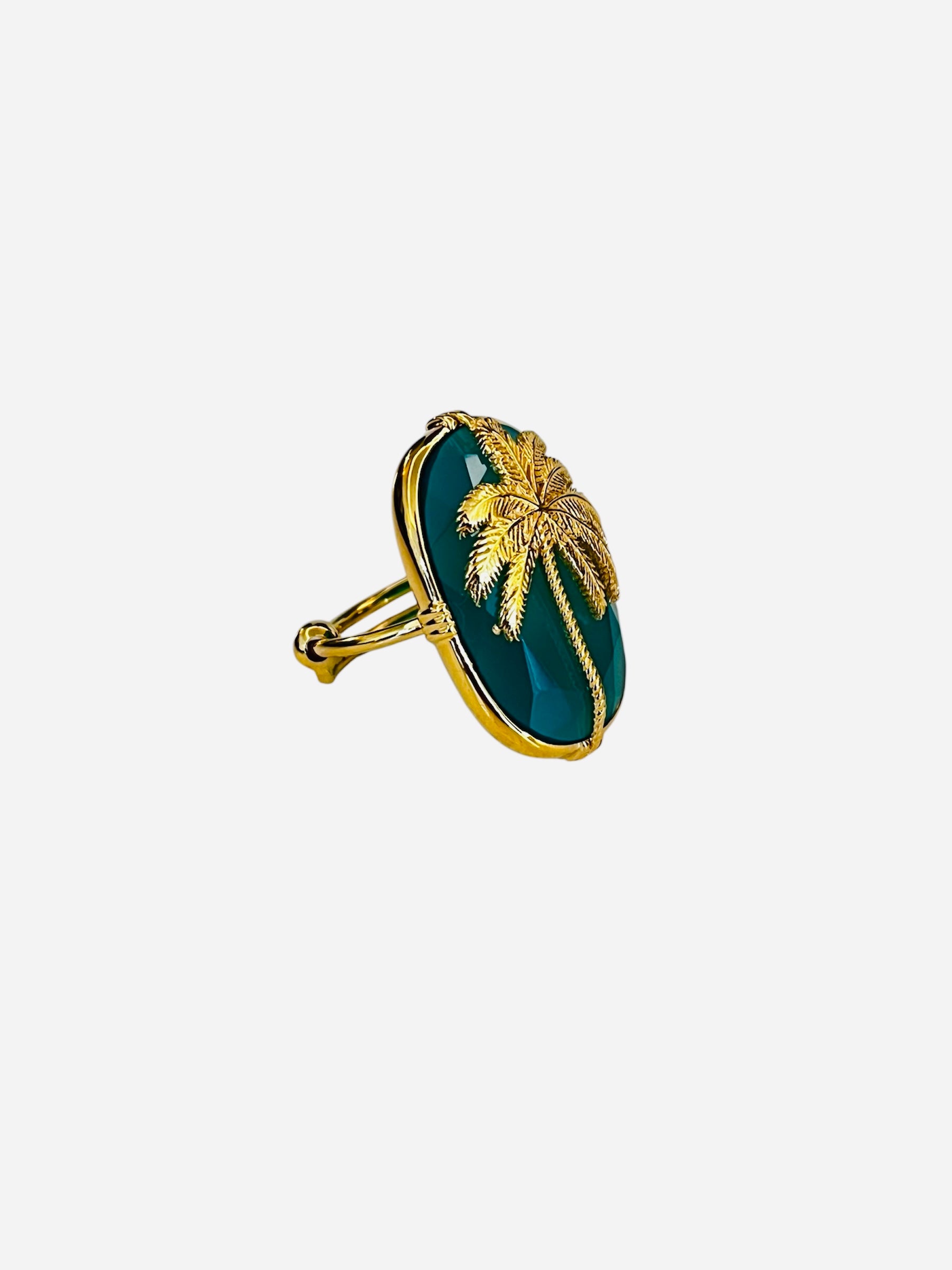 Gold-plated ring with a labradorite gemstone and palm tree motif
