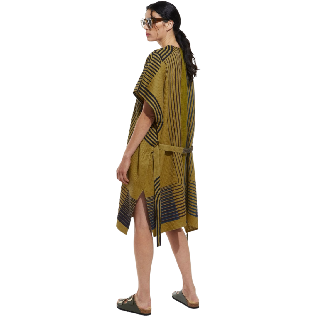 Khaki cotton kimono with graphic style.