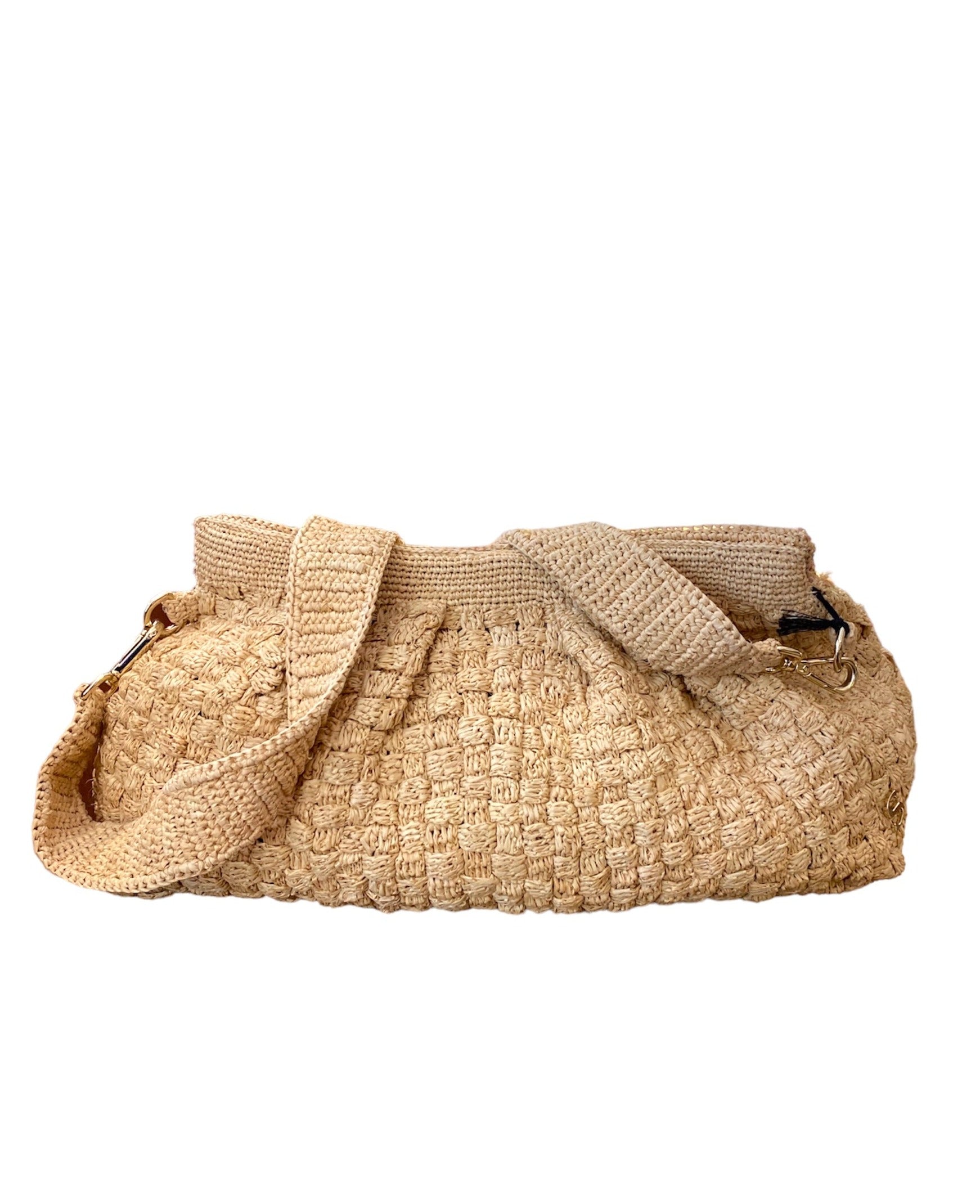 Can be worn on the shoulder or as a cross-body thanks to its large handle.