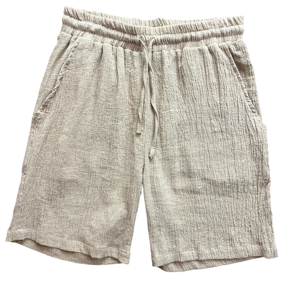 . Description : elasticated shorts at the waist with cord.